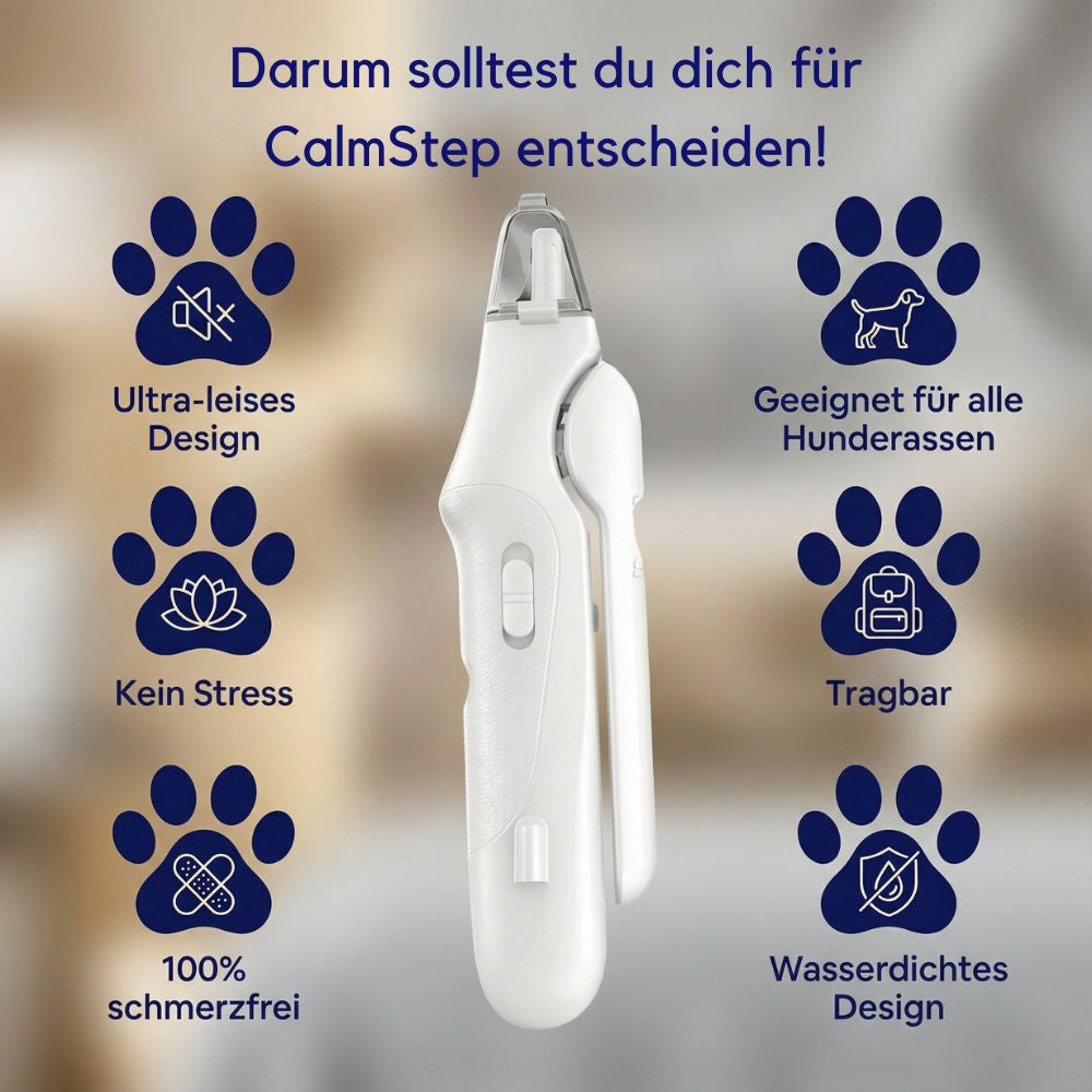 85% der Schweizer Tierärzte empfehlen LED-Krallenscheren für sicherere Pflege zu Hause. CalmStep™ wurde von uns getestet und erfüllt alle Kriterien für stressfreie Krallenpflege und präzisen Nervschutz.