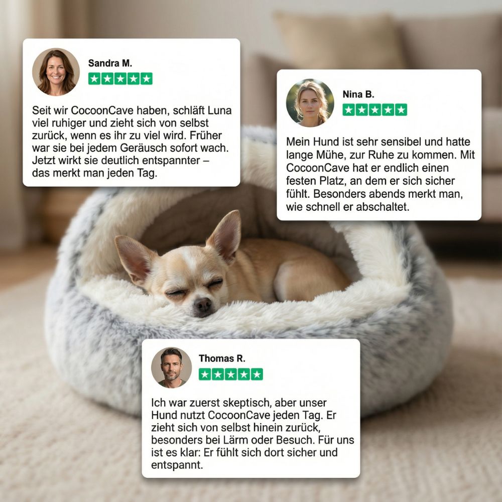 Ja, CocoonCave wurde speziell für Hunde entwickelt, die sensibel auf Reize reagieren oder schwer zur Ruhe kommen. Das geschützte Design unterstützt ein Gefühl von Sicherheit und Geborgenheit, ohne deinen Hund einzuengen.